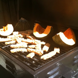 Bring on the BBQ - Zucchini & Arugala Salad, Kobocha Squash with Cilantro Pecan Pesto + BBQ'd Tempeh